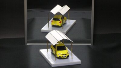 鏡に映るガレージの形が違う!どうなっているんだ。難しそうな方程式をたくさん使ってこれを作成していました。